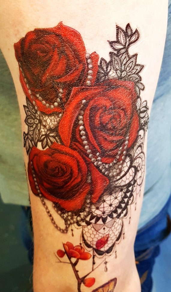 Rose And Lace Large Sexy Temporary Transfer Tattoo For Arm Etsy Singapore