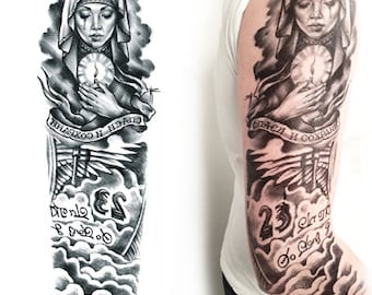 Full Arm Sleeve Temporary Transfer Tattoo Heavenly Etsy Israel